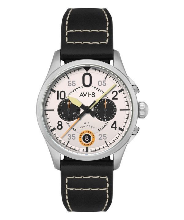 AVI-8 Reloj automático para hombre AVI-8 Flyboy Airmaster GMT con correa de piel y esfera blanca AV-4128-02
