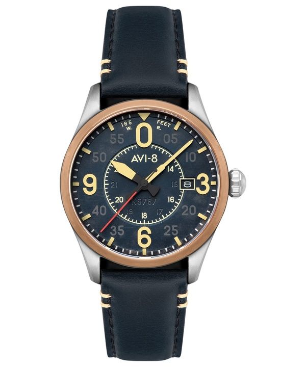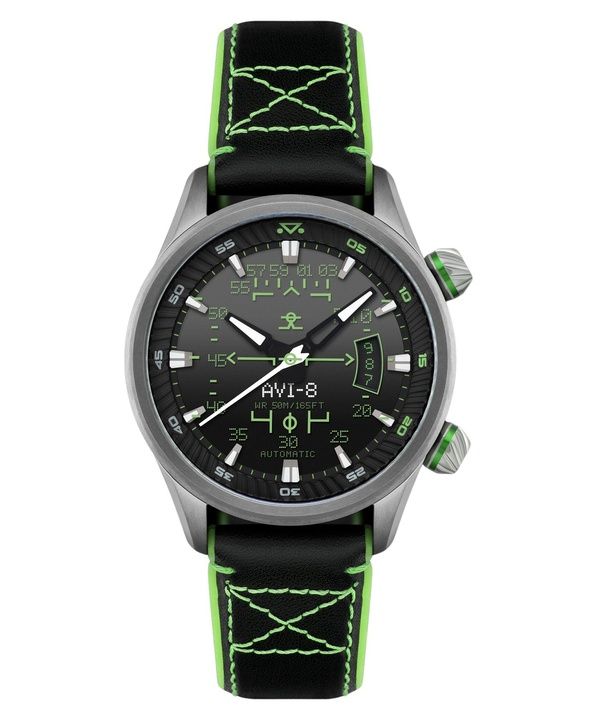 AVI-8 Reloj automático para hombre AVI-8 Bell X-1 Machbuster con correa de caucho y cuero, esfera negra azabache, modelo AV-4115-04.