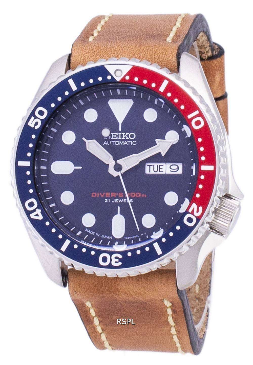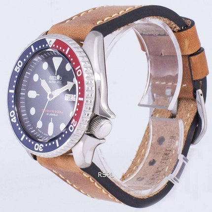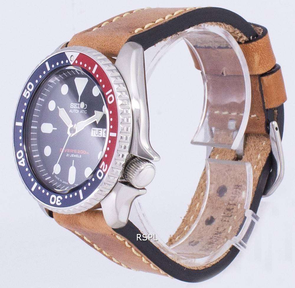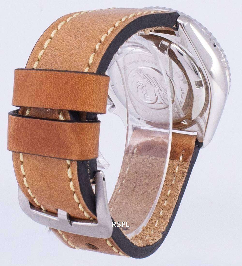 200M Japón de Automatic Seiko LS17 SKX009J1 Diver de cuero marrón correa Watch de Men