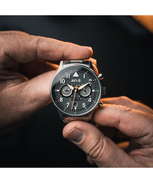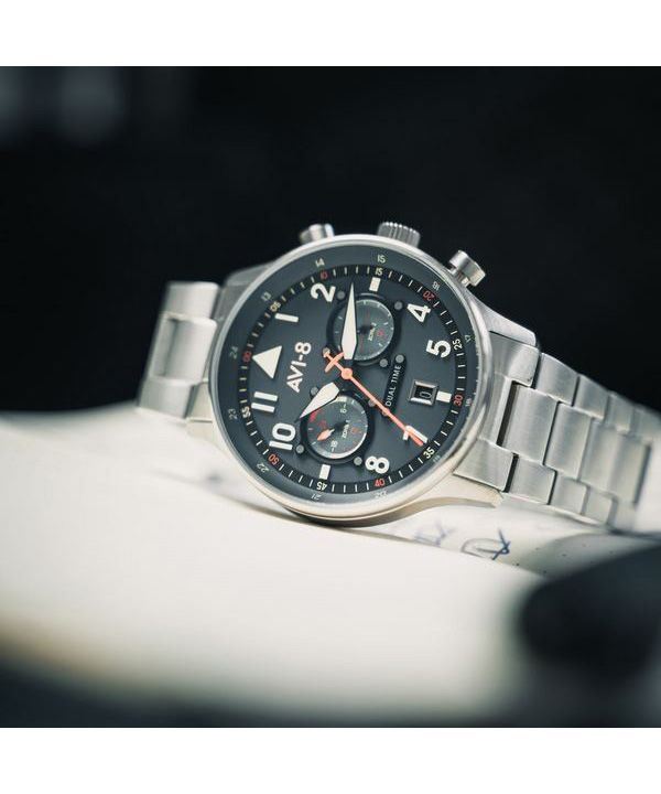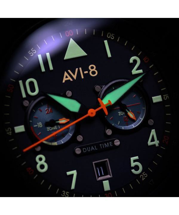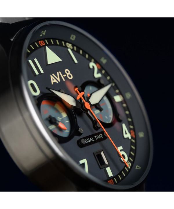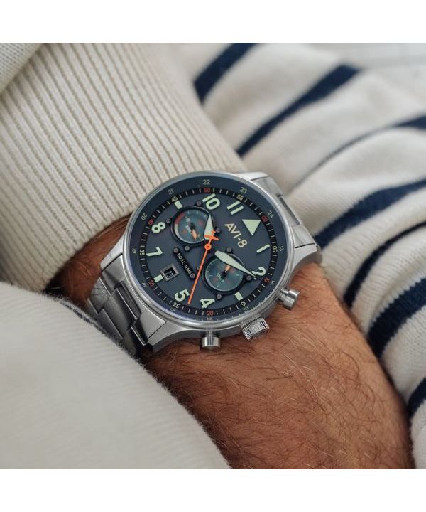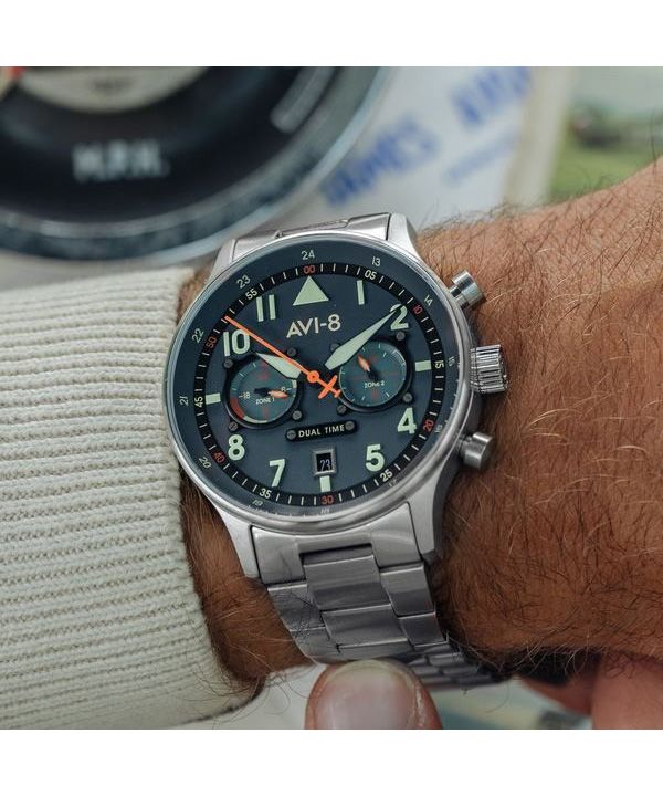 AVI-8 Hawker Hurricane Carey Dual Time Gutersloh Acero inoxidable esfera azul AV-4088-22 Reloj para hombre