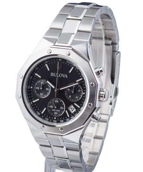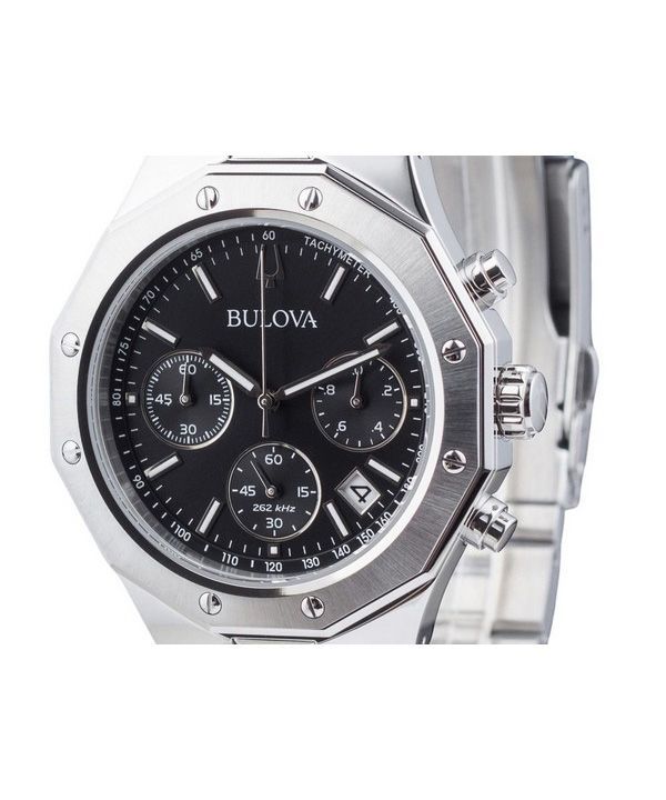 Bulova Classic Precisionist Octágono Cronógrafo Acero inoxidable Esfera negra Cuarzo 96B410 100M Reloj para hombre
