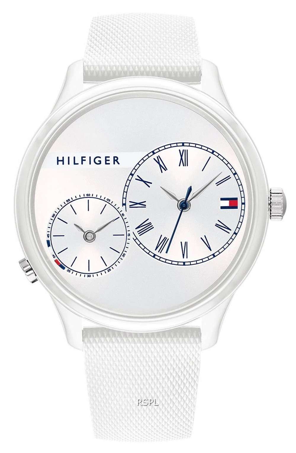 Reloj Tommy Hilfiger Meg con esfera blanca y correa de silicona de cuarzo 1782145 para mujer