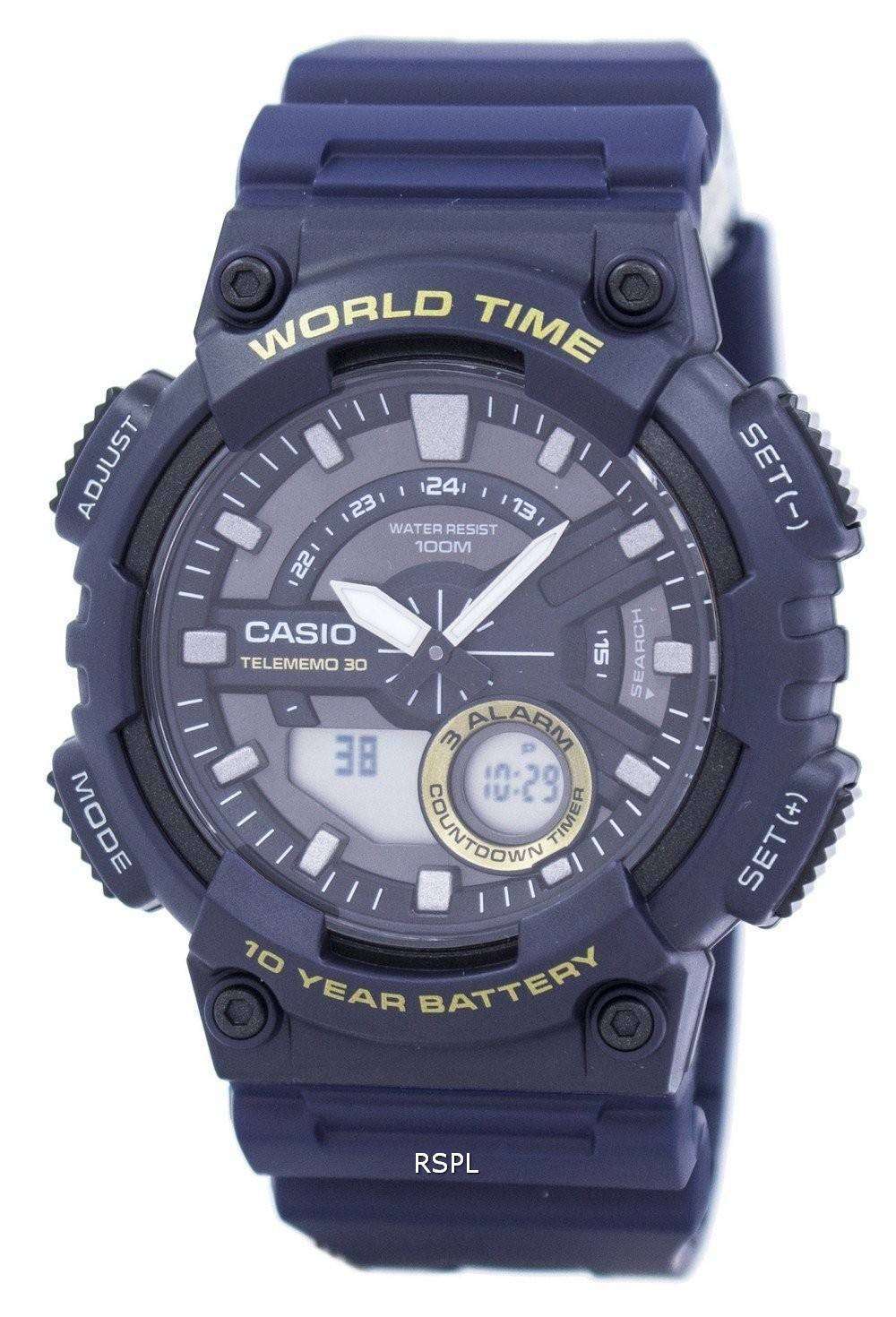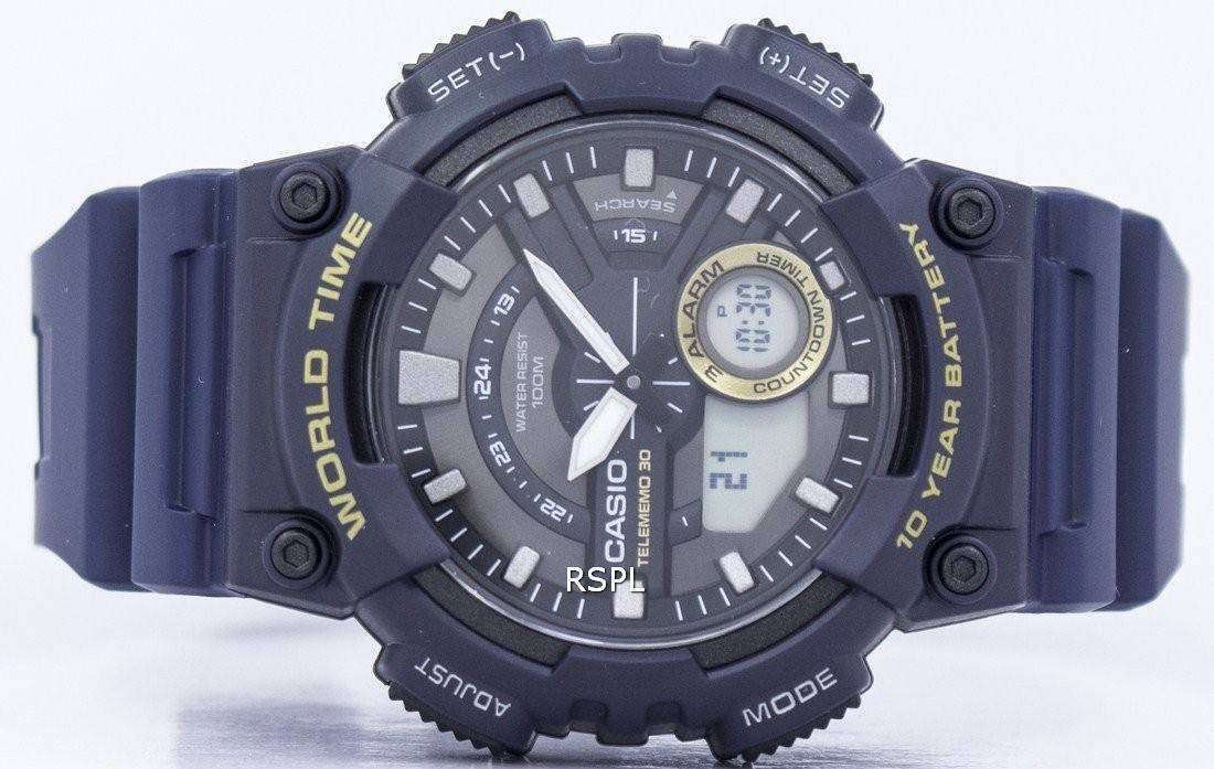 Casio Telememo 30 mundo tiempo alarma analógica Digital AEQ-110W-2AV reloj de Men