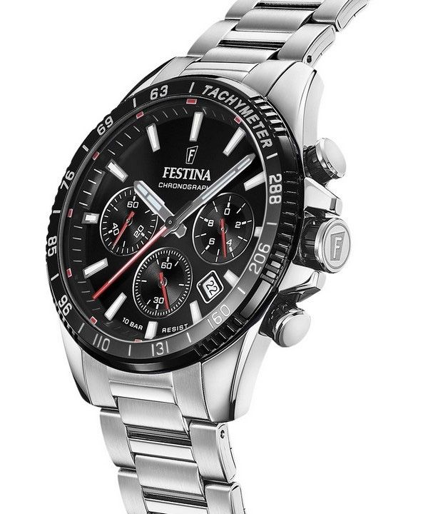 Festina Timeless Chronograph - Reloj de cuarzo para hombre, acero inoxidable, esfera negra, F20560-6, 100 m