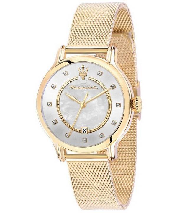 Maserati Epoca Crystal Accents Gold Tone Stainless Steel Mesh Mother Of Pearl Dial Quartz R8853118512 100M Women's Watch