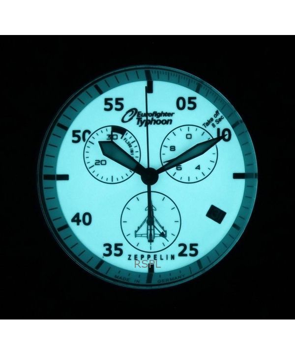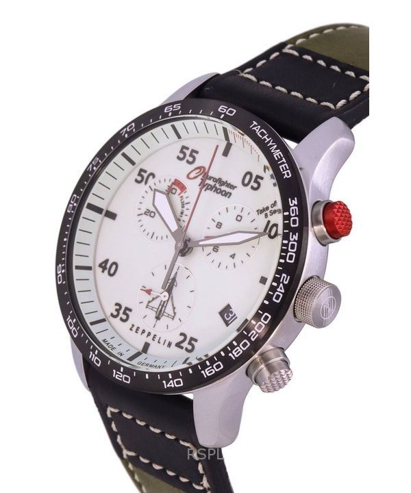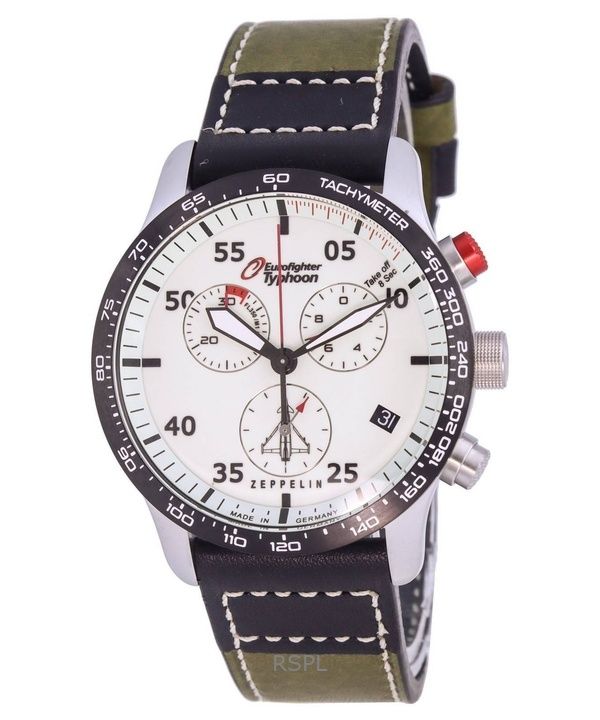 Refurbished Zeppelin Eurofighter Chronograph Leather Strap Beige Dial Quartz 72985 100M Mens Watch