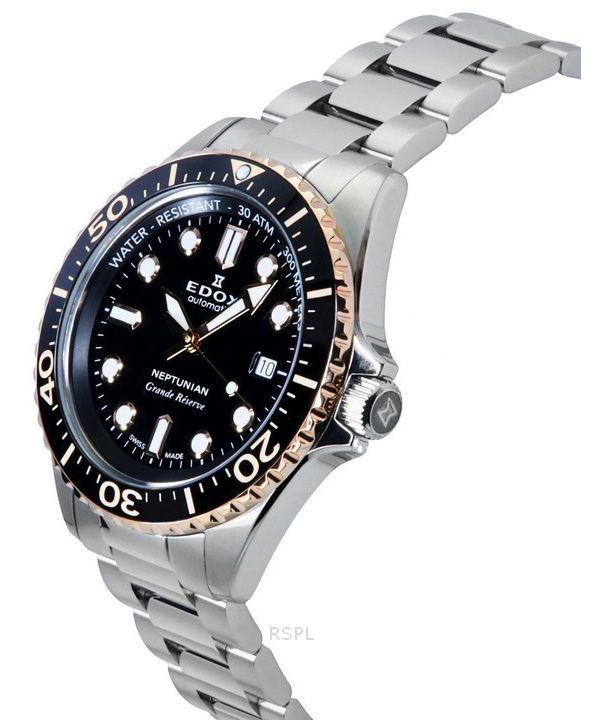 Reloj automático Edox Neptunian Grande Reserve para hombre, esfera negra, 80801 3NRM NIR 300M