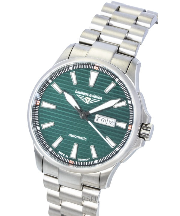 Reloj automático Bauhaus Aviation de titanio con esfera verde 2862M4 100M para hombre