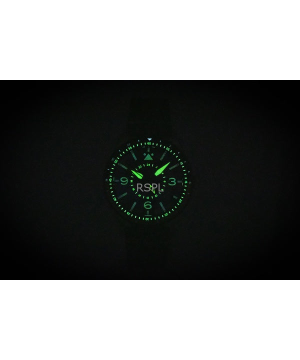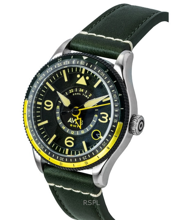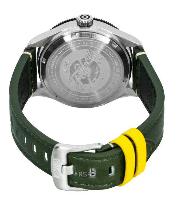 Reloj automático para hombre AVI-8 Flyboy Airmaster GMT con fuselaje, correa de piel verde y esfera verde AV-4128-03