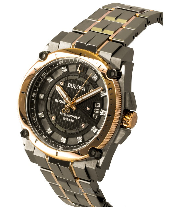 Reloj Bulova Precisionist Diamond de acero inoxidable con esfera negra, movimiento de cuarzo, para buceo, modelo 98D149, resistente al agua hasta 300 metros.