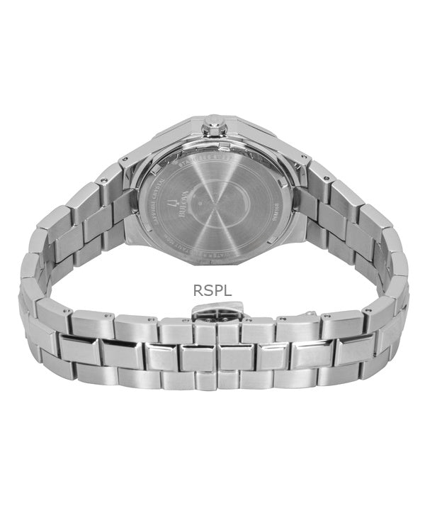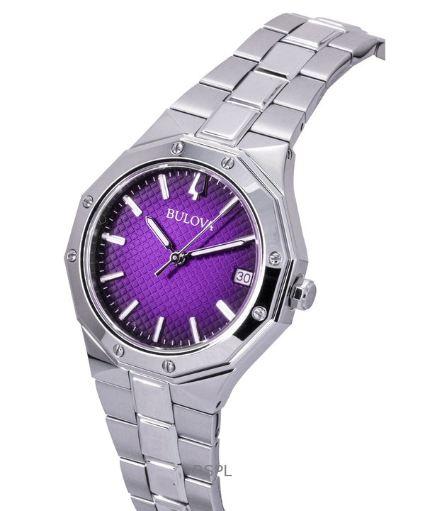 Reloj Bulova Prestige de acero inoxidable con esfera morada de cuarzo 96M168 100M para mujer