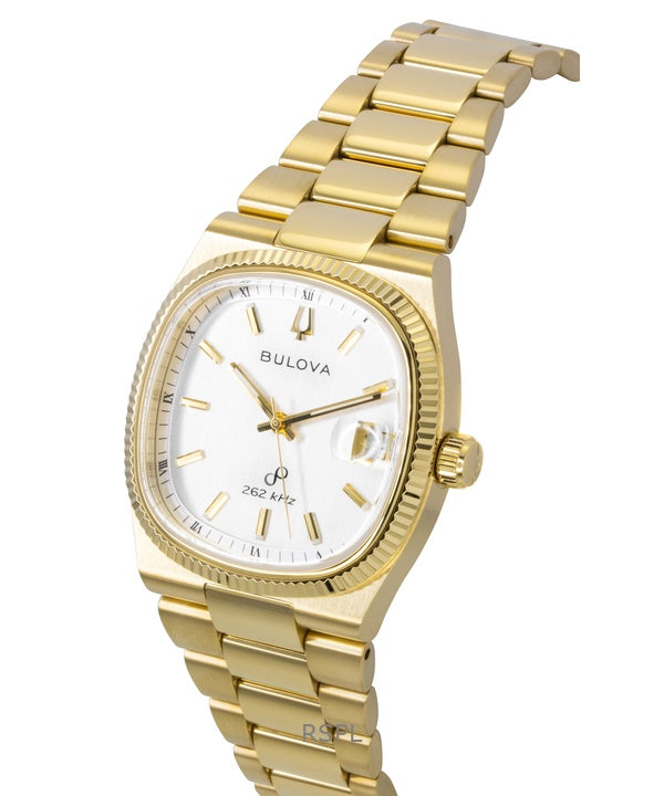 Reloj Bulova Super Seville de acero inoxidable en tono dorado con esfera blanca de cuarzo 97B223 para hombre