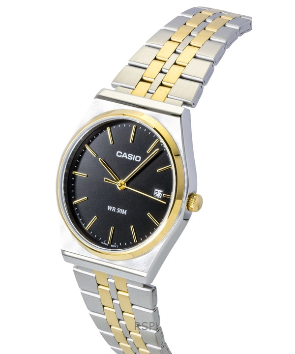 Reloj Casio analógico de cuarzo bicolor de acero inoxidable con esfera negra MTP-B145SG-1AV para hombre
