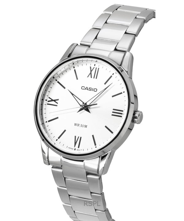 Reloj Casio analógico de cuarzo para hombre, modelo MTP-1303DD-7AV, de acero inoxidable y esfera plateada.