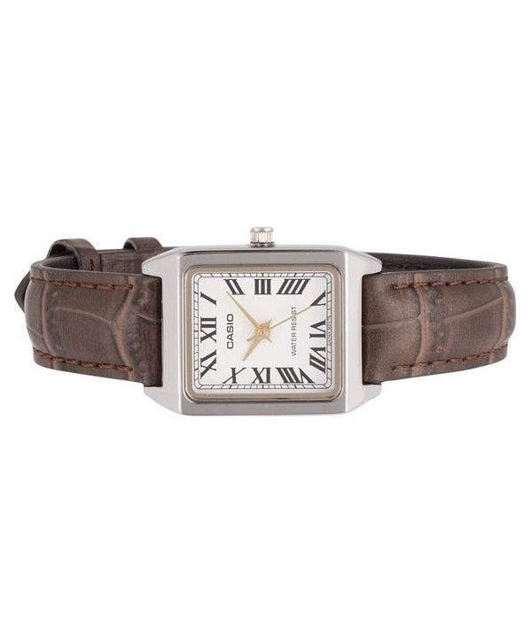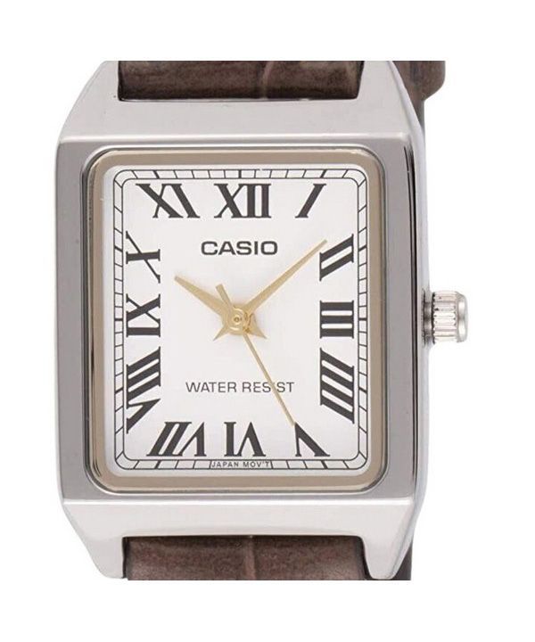Reloj Casio analógico estándar con correa de cuero cromada y esfera blanca de cuarzo LTP-V007L-7B2 para mujer