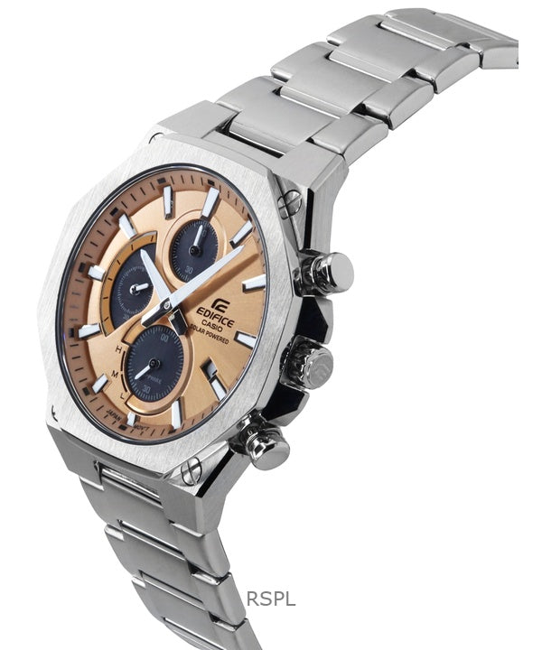 Reloj Casio Edifice Slim Line analógico con cronógrafo, acero inoxidable, esfera de cobre, solar EFS-S570D-5A, 100 m, para hombr