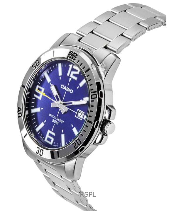 Reloj Casio Enticer analógico de acero inoxidable con esfera azul de cuarzo MTP-VD01D-2BV para hombre