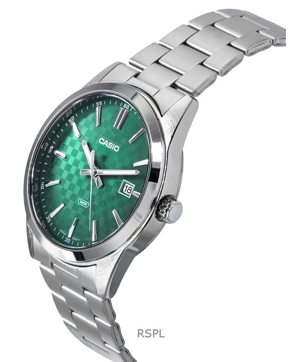 Reloj Casio estándar analógico de acero inoxidable con esfera verde y cuarzo MTP-VD03D-3A1 para hombre