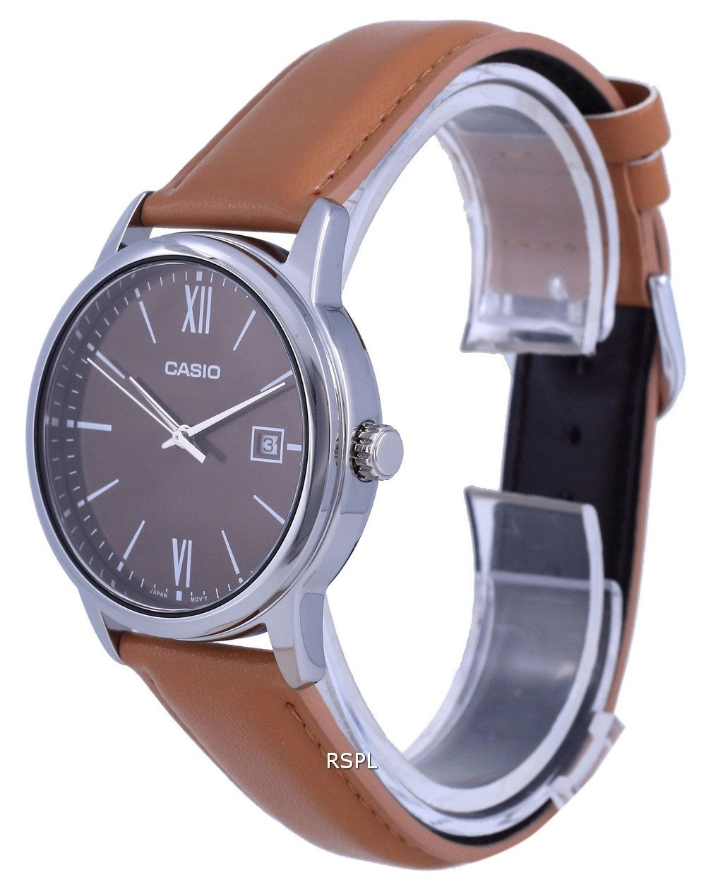 Reloj Casio Maroon Dial de acero inoxidable analógico de cuarzo MTP-V002L-5B3 MTPV002L-5 para hombre