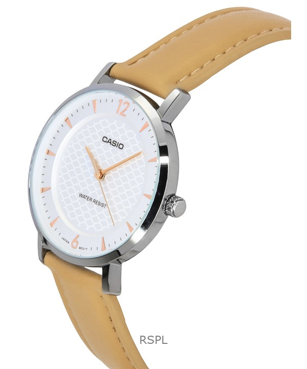 Reloj Casio Standard analógico de cuarzo con correa de cuero y esfera color crema LTP-VT04L-7A1 para mujer