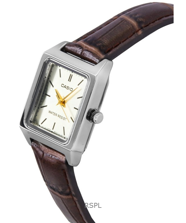 Reloj Casio Standard analógico de cuarzo con correa de cuero y esfera marfil LTP-V007L-9E para mujer