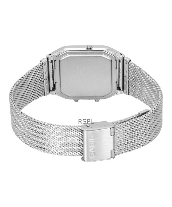 Reloj Casio vintage analógico digital de acero inoxidable con pulsera de malla y esfera plateada de cuarzo AQ-230EM-7A unisex