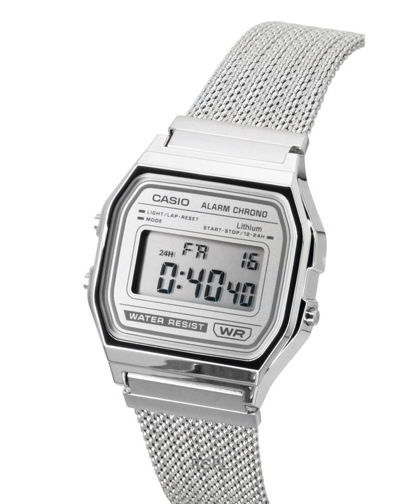 Reloj Casio Vintage Digital de acero inoxidable con pulsera de malla de cuarzo A158WEM-7 unisex