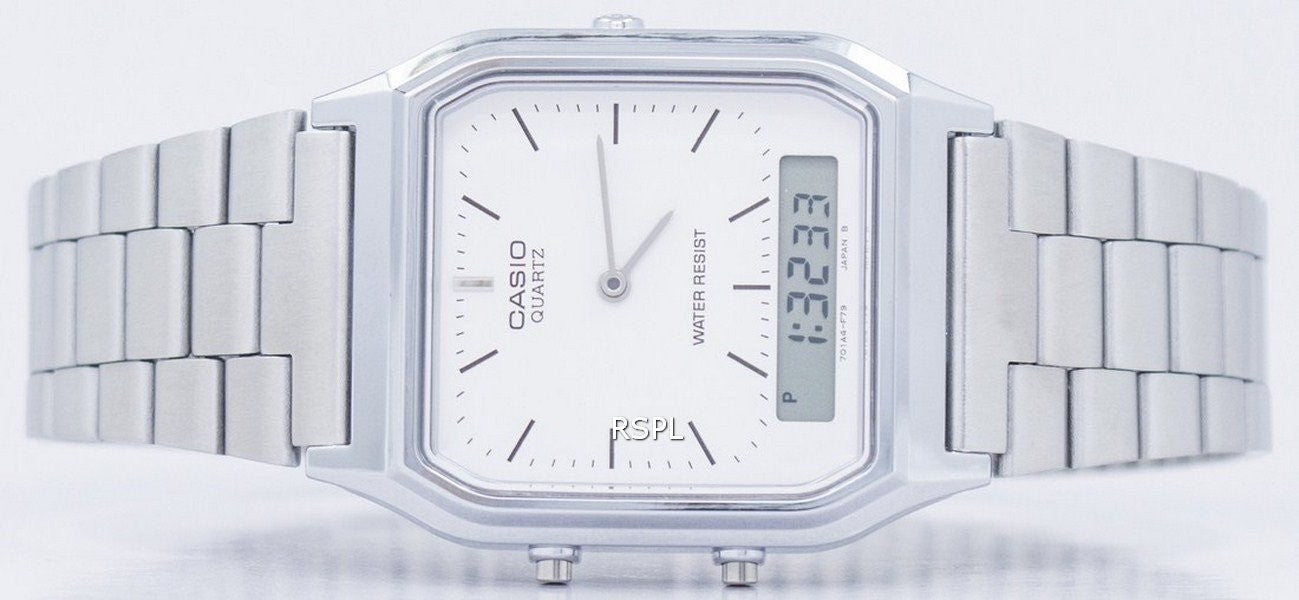 Reloj Casio Vintage Dual Time Alarm Cuarzo analógico digital AQ-230A-7DMQ AQ230A-7DMQ