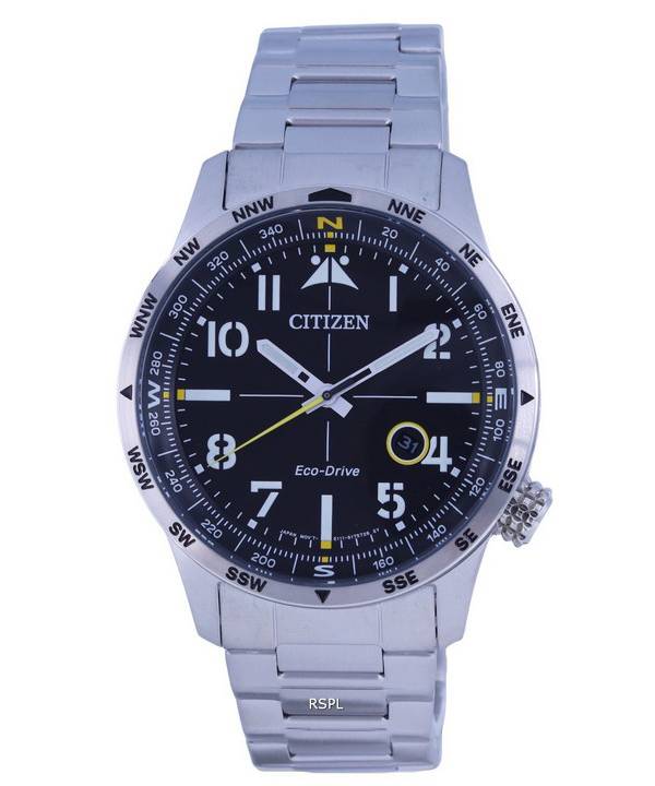 Reloj Citizen Aviator Eco-Drive de acero inoxidable con esfera negra BM7550-87E 100M para hombre