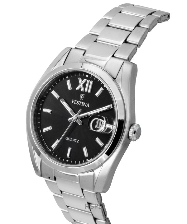 Reloj Festina Classic de acero inoxidable con esfera negra de cuarzo F20707-6 para hombre