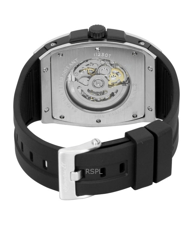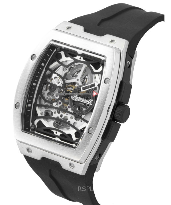 Reloj Ingersoll The Challenger I12301 automático para hombre con correa de caucho y esfera esquelética negra