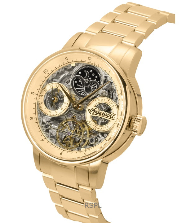 Reloj Ingersoll The Jazz automático de acero inoxidable con esfera esquelética dorada I07711 para hombre