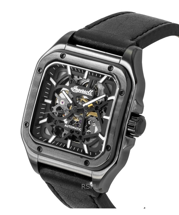 Reloj Ingersoll The Ollie I14504 automático para hombre con correa de cuero y esfera esquelética negra