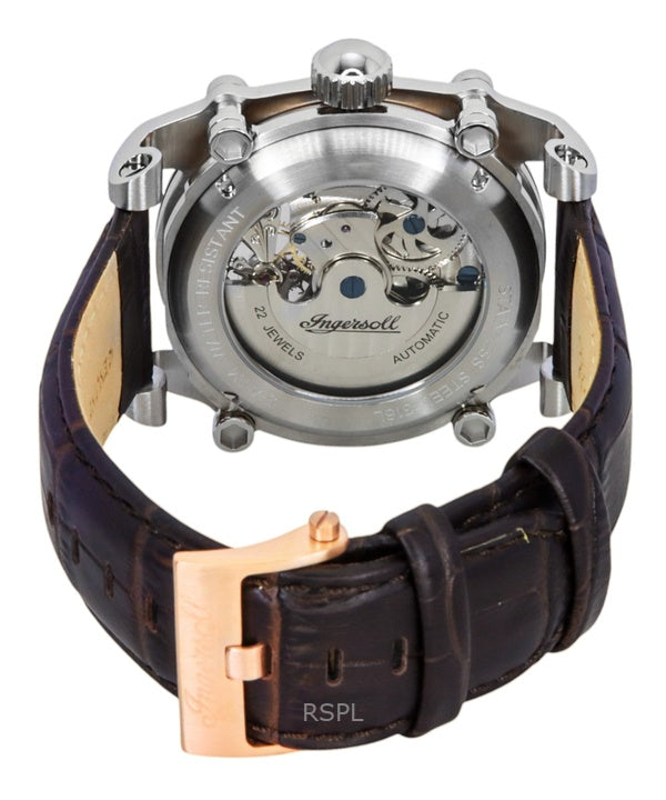 Reloj Ingersoll The Varsity I15401 automático para hombre con correa de cuero y esfera esquelética plateada