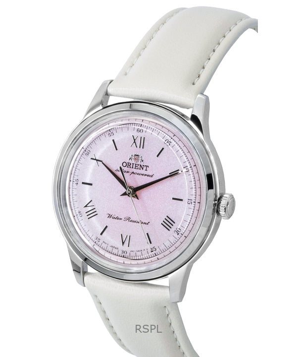 Reloj Orient Bambino con correa de piel y esfera rosa, solar, RA-WK0005P para hombre