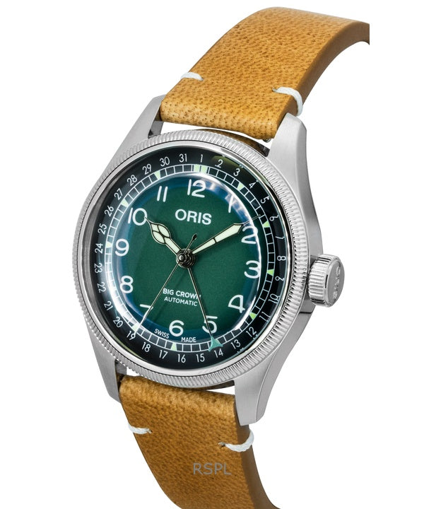 Reloj Oris Big Crown Cervo Volante con correa de piel y esfera verde, automático, 01-754-7779-4067, para hombre