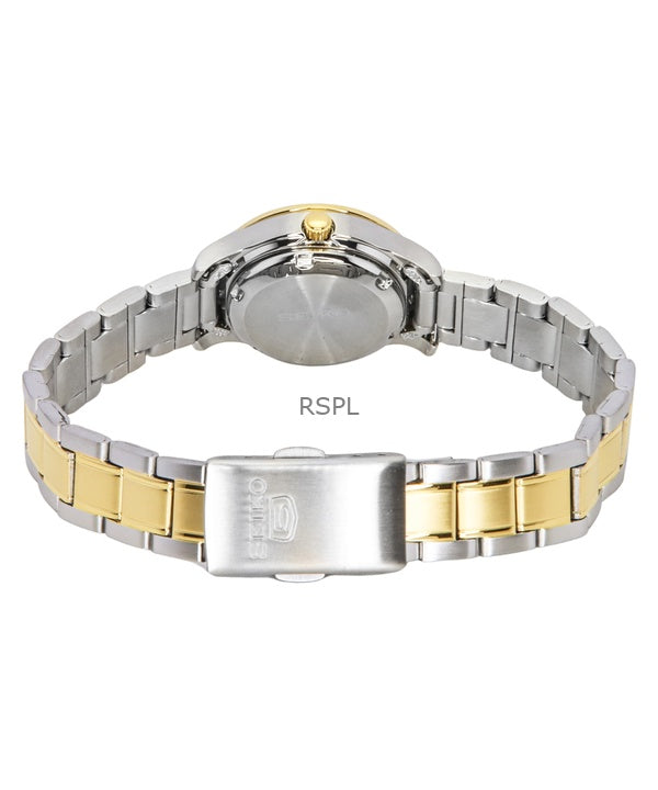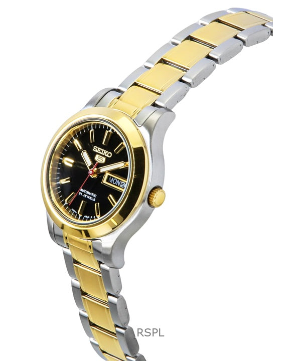 Reloj Seiko 5 automático de acero inoxidable en dos tonos con esfera negra y 21 joyas SYMD94K1 para mujer