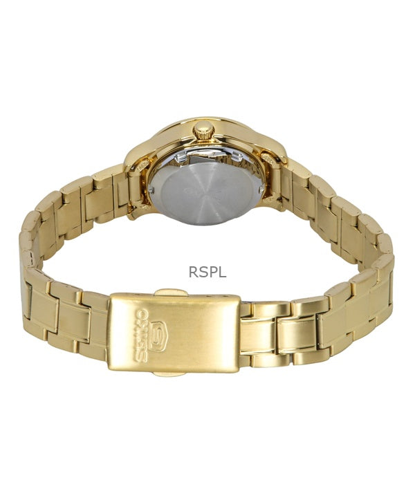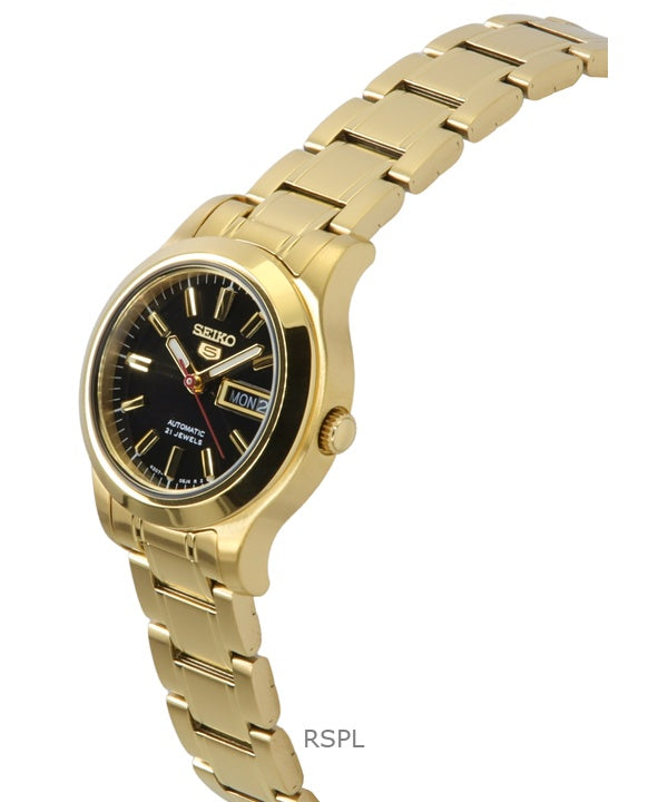 Reloj Seiko 5 Classic de acero inoxidable dorado con esfera negra y 21 joyas, automático, SYMD96K1, para mujer