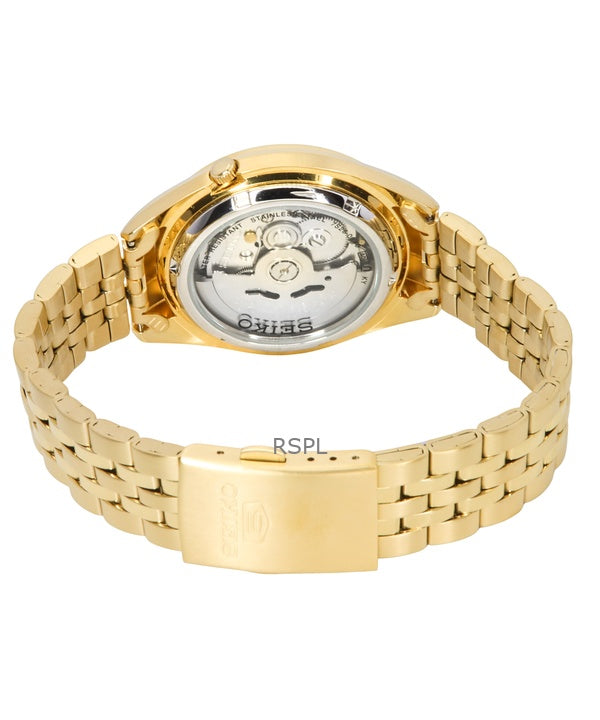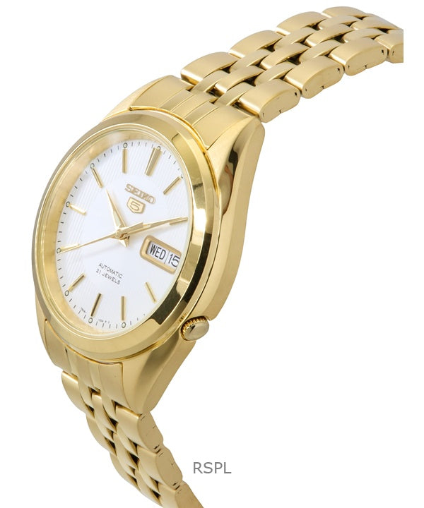 Reloj Seiko 5 de acero inoxidable en tono dorado, esfera blanca, 21 joyas, automático SNKL26K1 para hombre