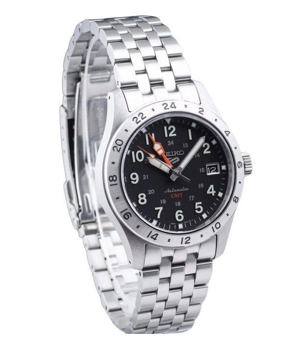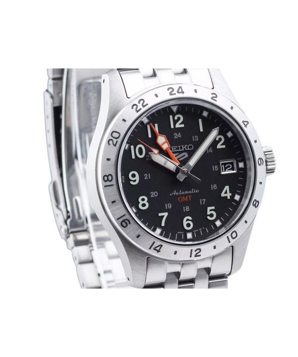 Reloj Seiko 5 Sports GMT Field Series de acero inoxidable con esfera negra y automático SSK023K1 100 para hombre