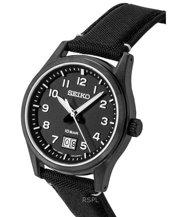 Reloj Seiko Classic para hombre, con correa de nailon, esfera negra, movimiento de cuarzo SUR571P1, resistente al agua hasta 100 m.