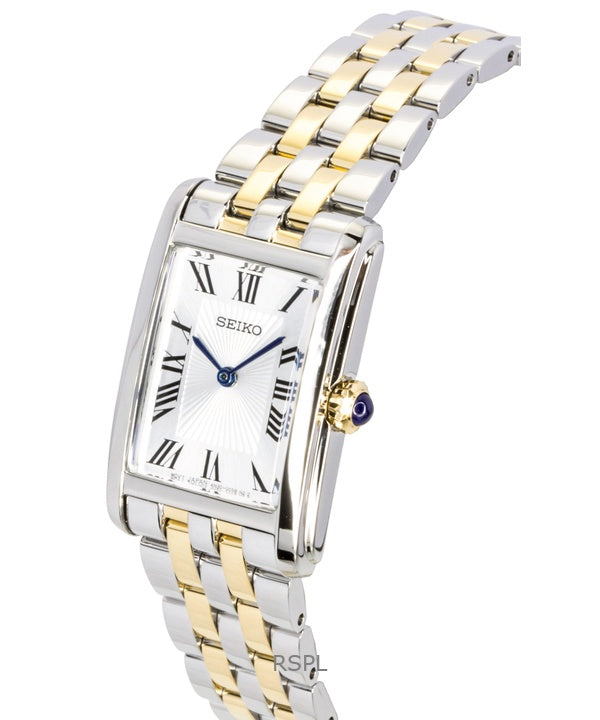 Reloj Seiko de cuarzo con esfera plateada y acero inoxidable de dos tonos SWR087P1 para mujer
