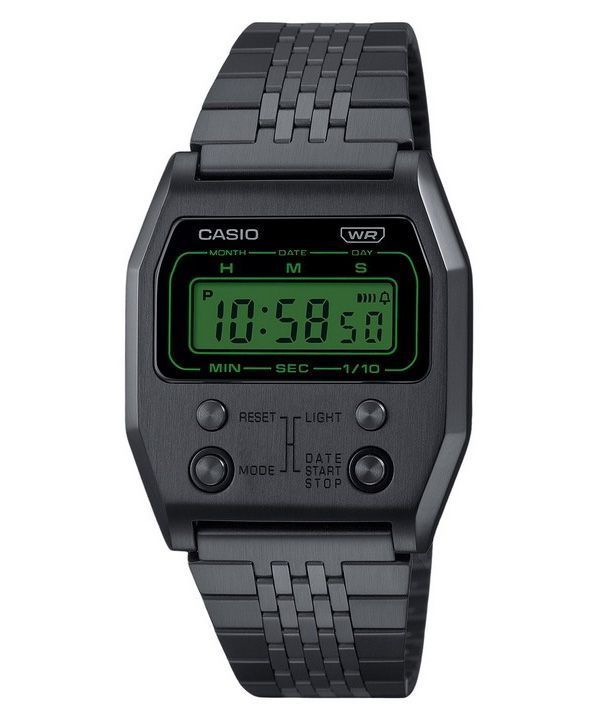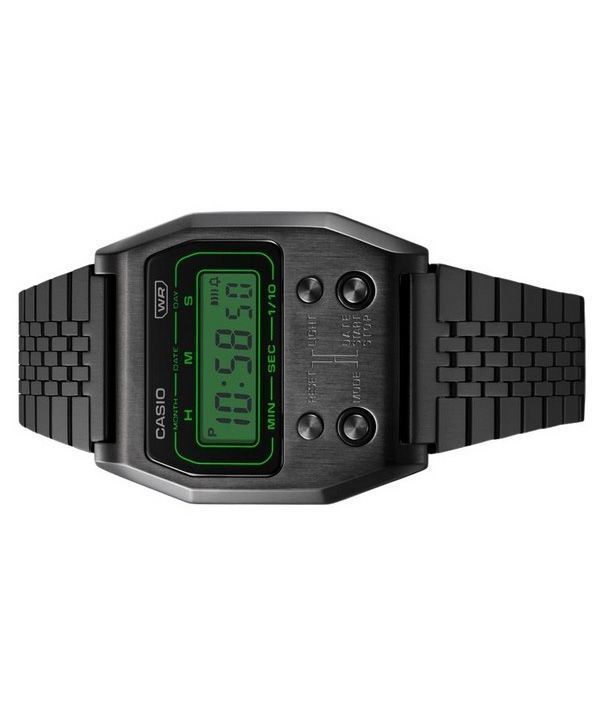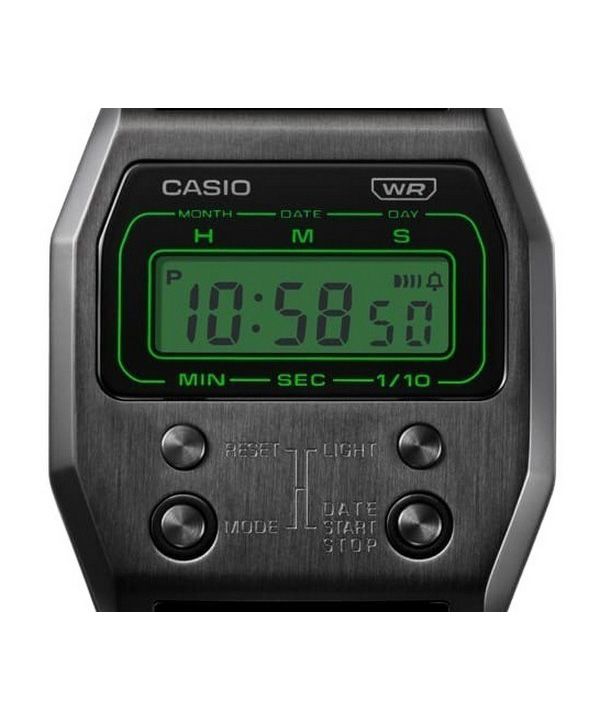 Reloj unisex Casio Vintage Digital de cuarzo de acero inoxidable chapado en iones negros A1100B-1