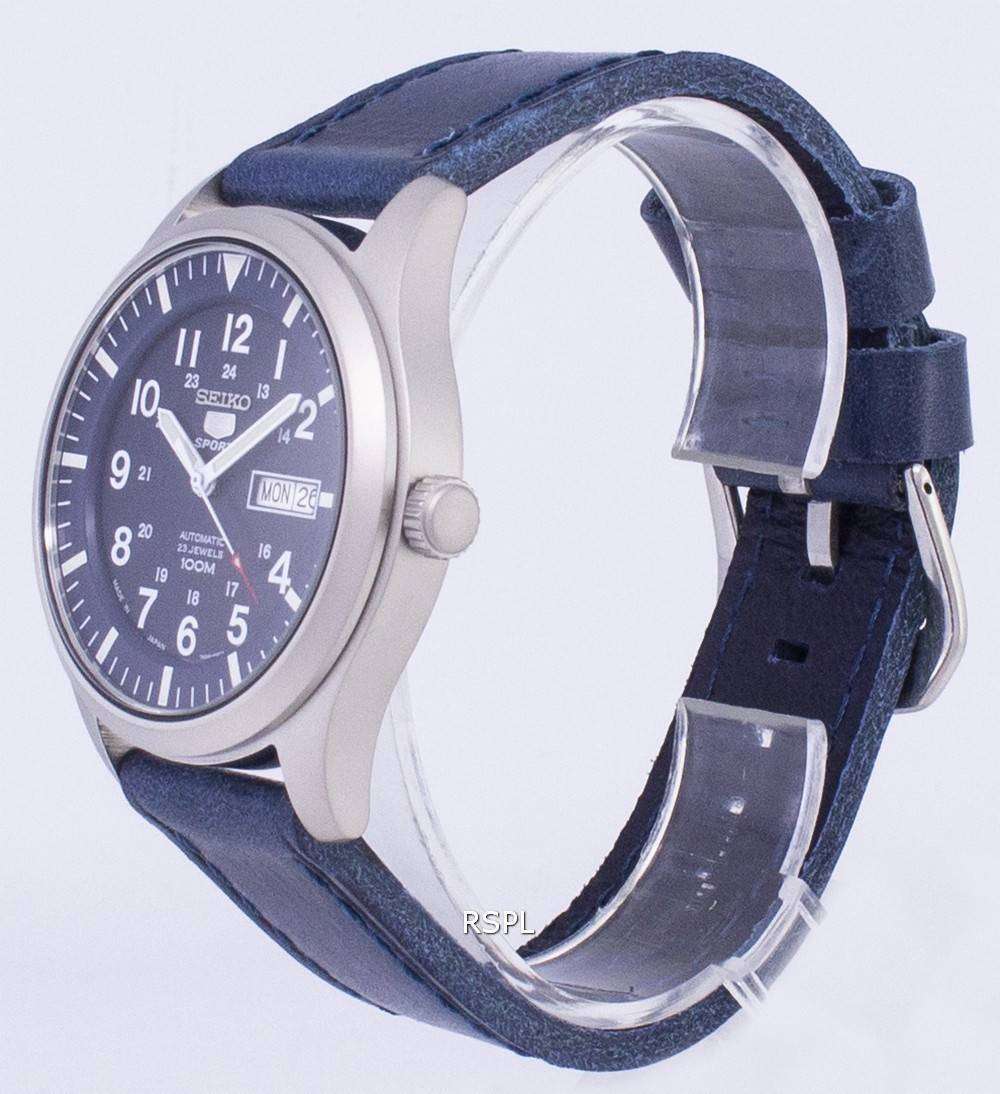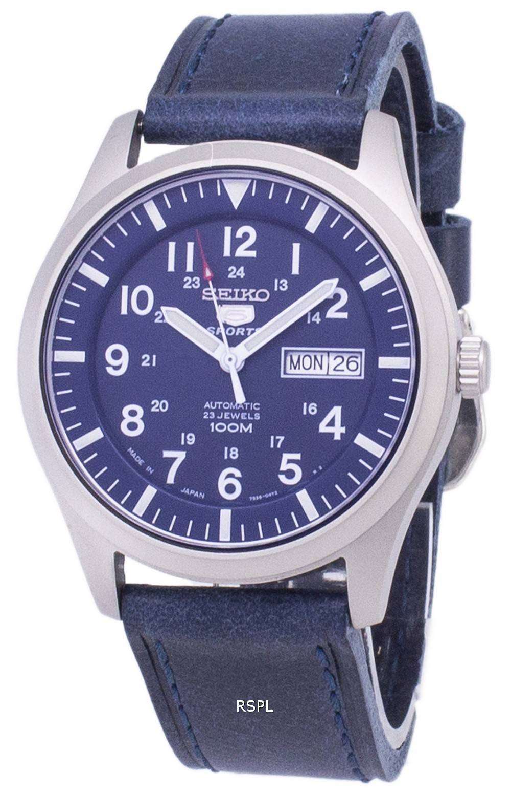 Seiko 5 Sports SNZG11J1 LS13 Japón de reloj de los hombres de la correa de cuero azul oscuro